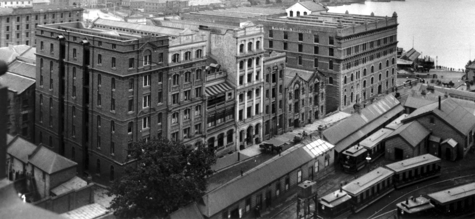 | The Bridge Street Yard from a nearby building (looking north). Taken c. 1899 and sourced from the "Trams Downunder" website. |