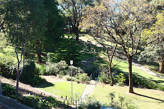 Taken as the lowering winter sun bathes the entire area with a golden haze, this vantage point affords some unusual angles for old favourites - which I will share with you next week together with some more interesting history. Taking the stairs to the Tarpeian Way and entering the Botanic Gardens at the rear of Government House, count the number of icons I have managed to include in the one shot: ferry, Luna Park, Harbour Bridge AND Opera House.